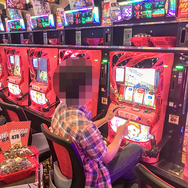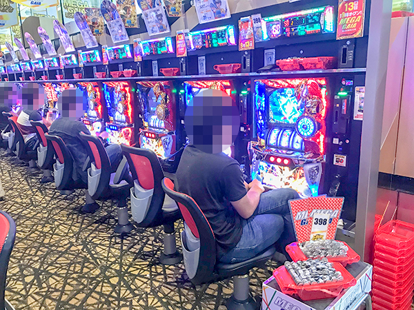 1000円/200枚パチスロの支持も厚い。心から遊技を楽しむプレイヤーが複数見られた。