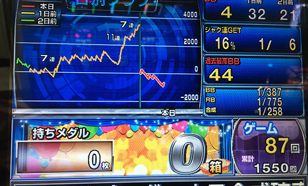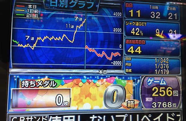 ハマリとボーナス獲得がうまくかみ合わず、調子の悪さを象徴するような結果となってしまった。