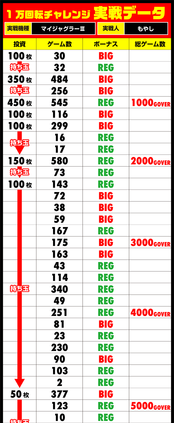 このホールでは初の1万回転チャレンジとなるので、過去のことは忘れ、心機一転して頑張りたいところだ。