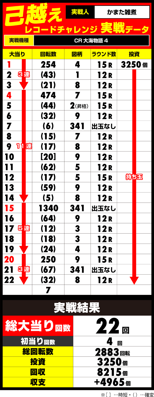 過去最高の大当り回数を越え、己の記録を刻みつける…。