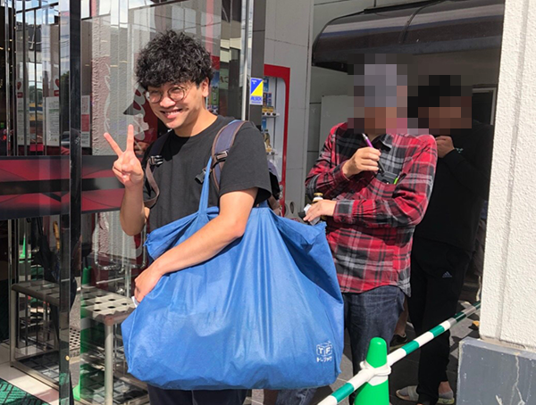 開店前には、イマイチ意味が伝わってこない謎の言葉が書かれたTシャツを着て、哀愁を漂わせた背中をカメラに向けていた。