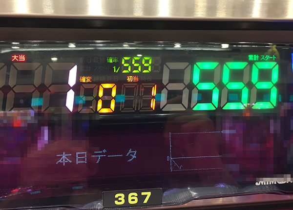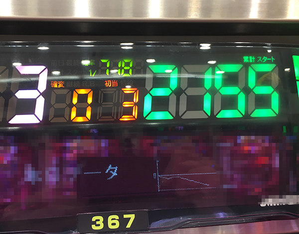 この日、最初の大当りは407回転目での通常大当り。その後は早い回転数で2回の初当りをゲットするも、結果はどちらも単発で終わってしまう。