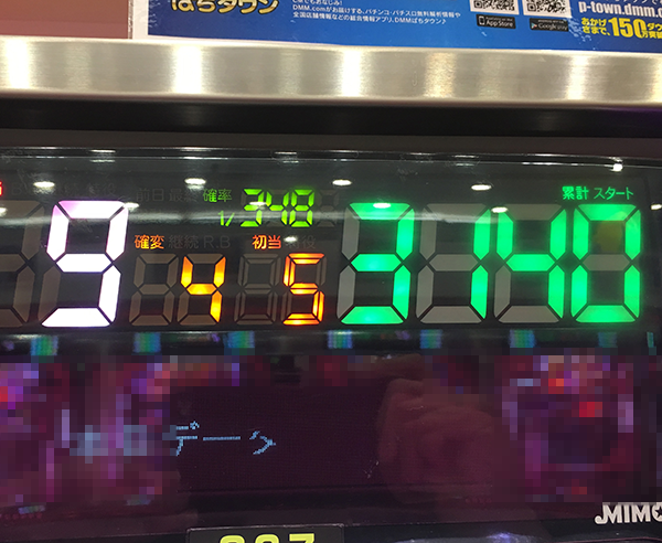 3回目の初当り後からはじまったハマリが終わりを迎えたのは、なんと1740回転目。これが通常大当りならば完全に心を折られてしまうところであったが、なんとか確変をゲットし、ギリギリのところで踏みとどまる。