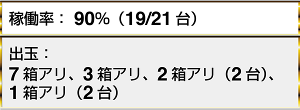 パチンコとパチスロのどちらにも満席となっている機種が多く、華麗なパフォーマンスを披露しているプレイヤーも多数。機種のポテンシャルを上手く引き出せているような姿もみられ、伝説級の光景に出会えるといった期待が高まった。