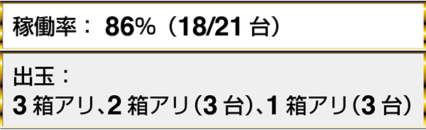 『バジリスク~甲賀忍法帖~絆』では18名中7名以上のプレイヤーが1箱以上の出玉を獲得していた。