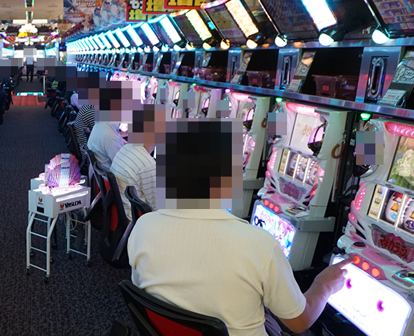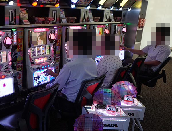 「バジリスク~甲賀忍法帖~絆」や「沖ドキ!」などに理想的ともいえる展開で遊技をおこなっている姿を目撃。