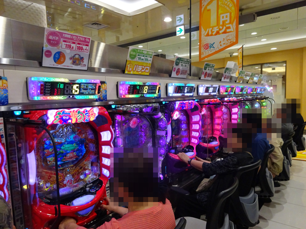 1円パチンコを見てみると、多くのプレイヤーでにぎわっており、コーナー全体が明るい雰囲気に包まれていた。