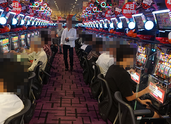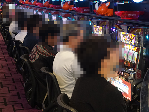 また、ひとりのプレイヤーがおなじ台を打ち続けていたことも印象的。うれしそうにレバーを叩き、充実した時間を過ごせている様子であった。