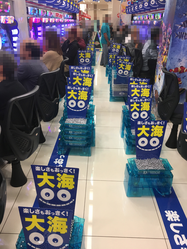 1円・0.5円・0.2円のパチンコ低貸しコーナーでは、スペックを問わず様々な機種が活気づいていた。その中でも特に海物語シリーズが好評の様子だった。