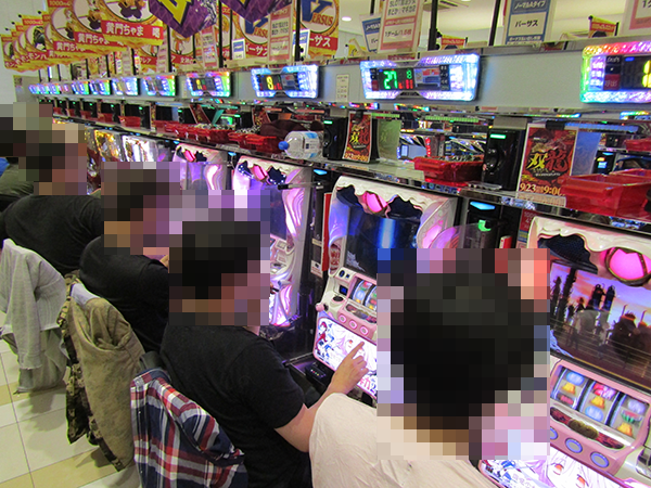設置されている4台がすべて埋まっていたことにくわえて、3名のプレイヤーが持ち玉を使用して遊技を楽しんでいたことも印象的だ。
