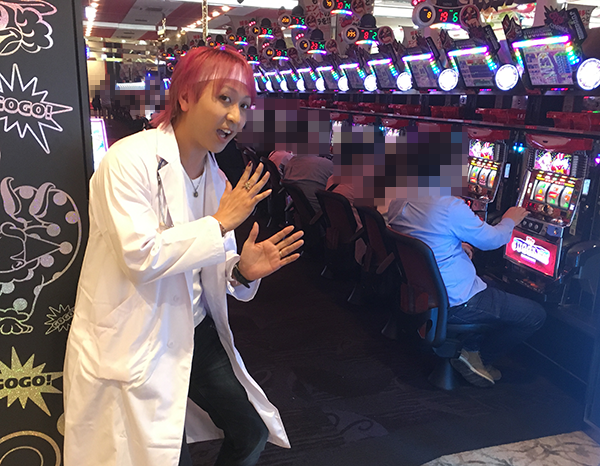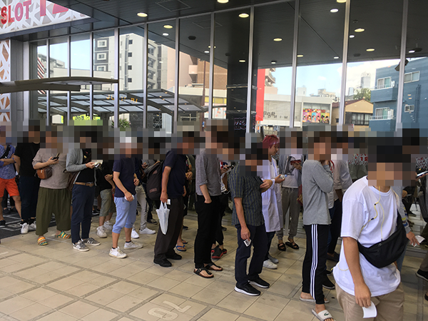 朝イチから集まっていた大勢のプレイヤーたちと入店したあとは、「ニューアイムジャグラーEXーKT」を確保。はるか遠くにみえるゴールを目指して、いざ挑戦スタート!!