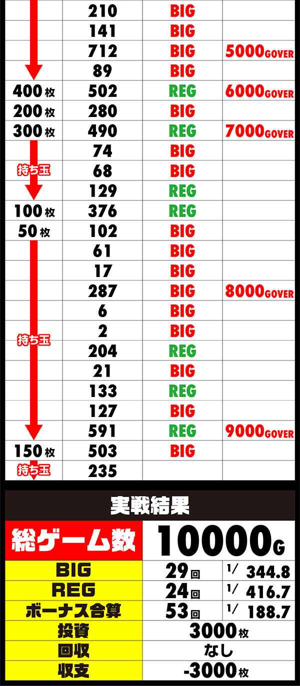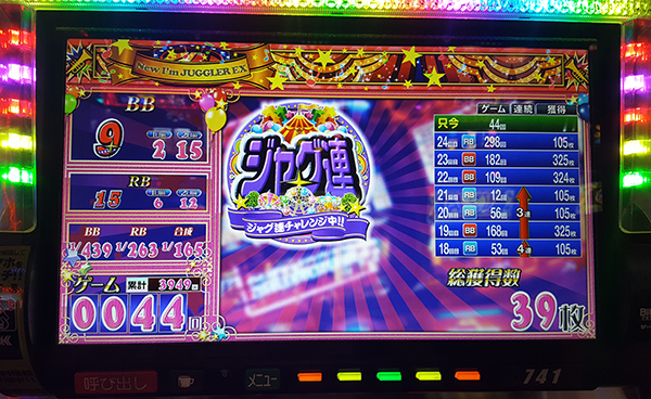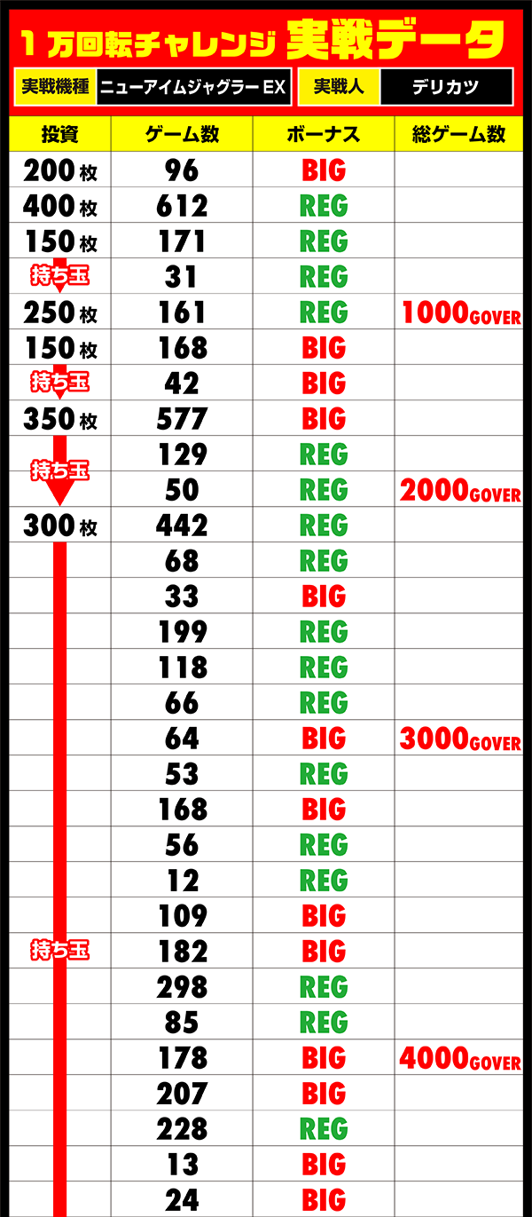 序盤から素早いプレイを披露し、順調にゲーム数を消化していくデリカツ。REGに偏る微妙なヒキをみせるなど、チャレンジに有利な展開にも後押しされ、15時頃には4000Gを消化していた。