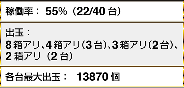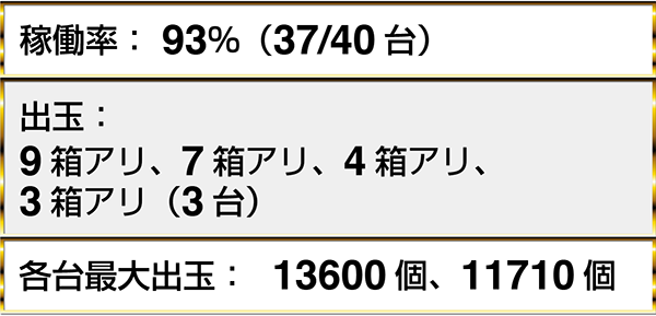 ・14時の時点で『ぱちんこCR真・北斗無双』に最大獲得出玉10000個超が2台