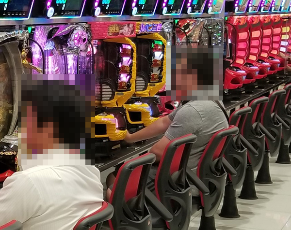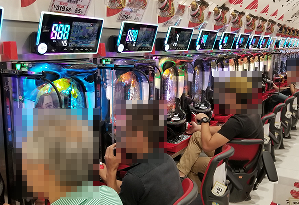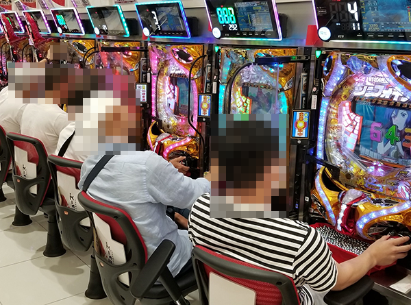 オープンから1時間が経過した14時頃のパチンココーナーでは、『ぱちんこCR真・北斗無双 第2章』と『CRフィーバー戦姫絶唱シンフォギア』がフル稼働。