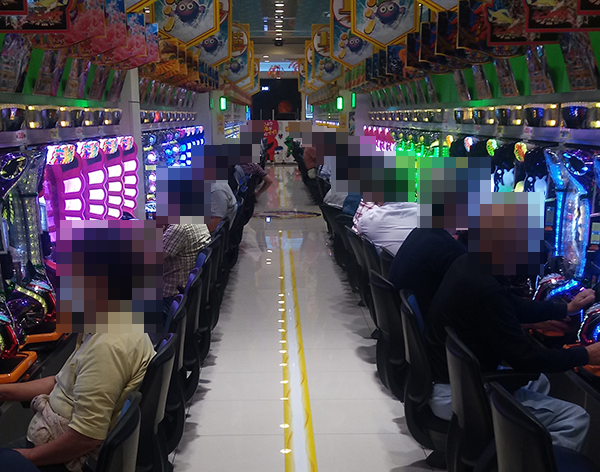 パチンコをみてみると、『CRフィーバー戦姫絶唱シンフォギア』や『CR JAWS再臨-SHARK PANIC AGAIN-』などに、楽しそうに遊技をおこなうプレイヤーを発見。