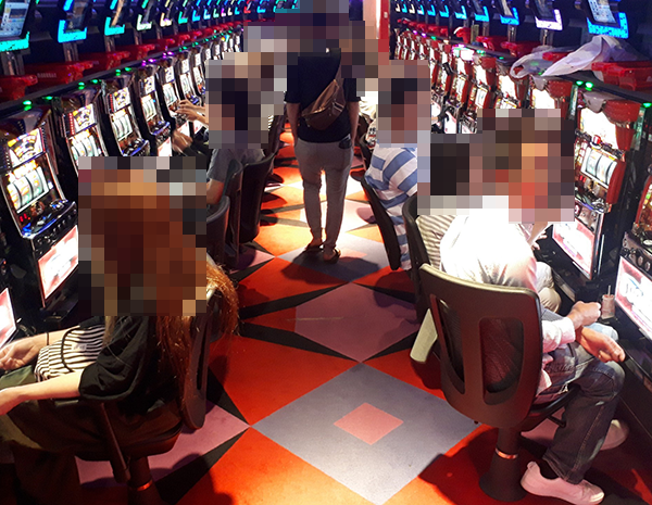 空き台をみつけることが難しいほどに1円パチンコも高稼働。