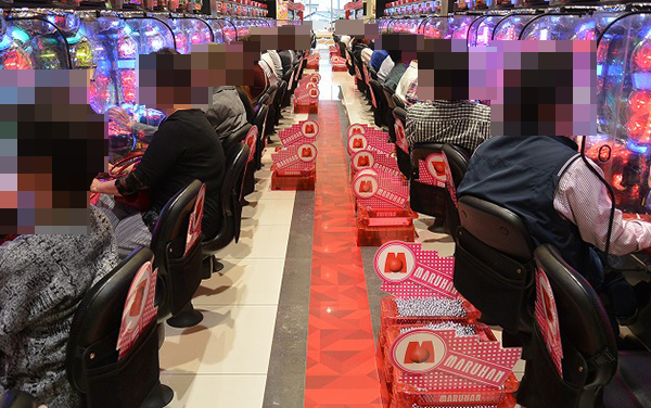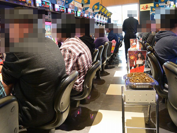 15時頃になっても4円パチンコでは、海物語シリーズが最も活気づいていた。