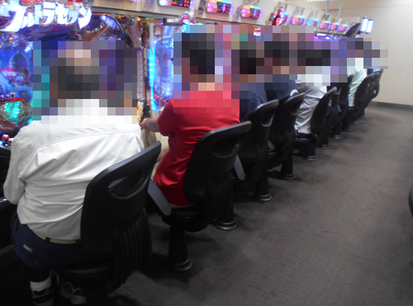 14時頃のパチスロで、盛り上がりが際立っていたのは「パチスロ北斗の拳 転生の章」と増台されたばかりの「ハナビ」。朝から同じ台を打っているプレイヤーもおり、じっくりと機種の魅力を堪能できていたように思う。