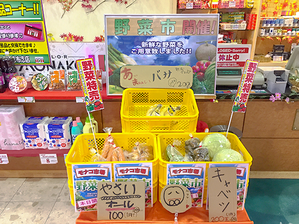 景品コーナーでは新鮮な野菜や果物を提供。プレイヤーの注目度も高く、魅力的なサービスといえるだろう。