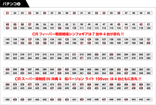 「CRフィーバー戦姫絶唱シンフォギア」も華やかなムードとなっており、半数以上に丸を描いた。