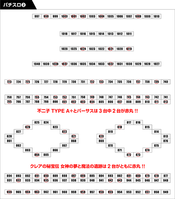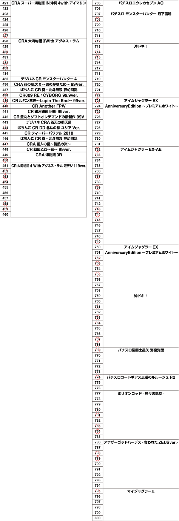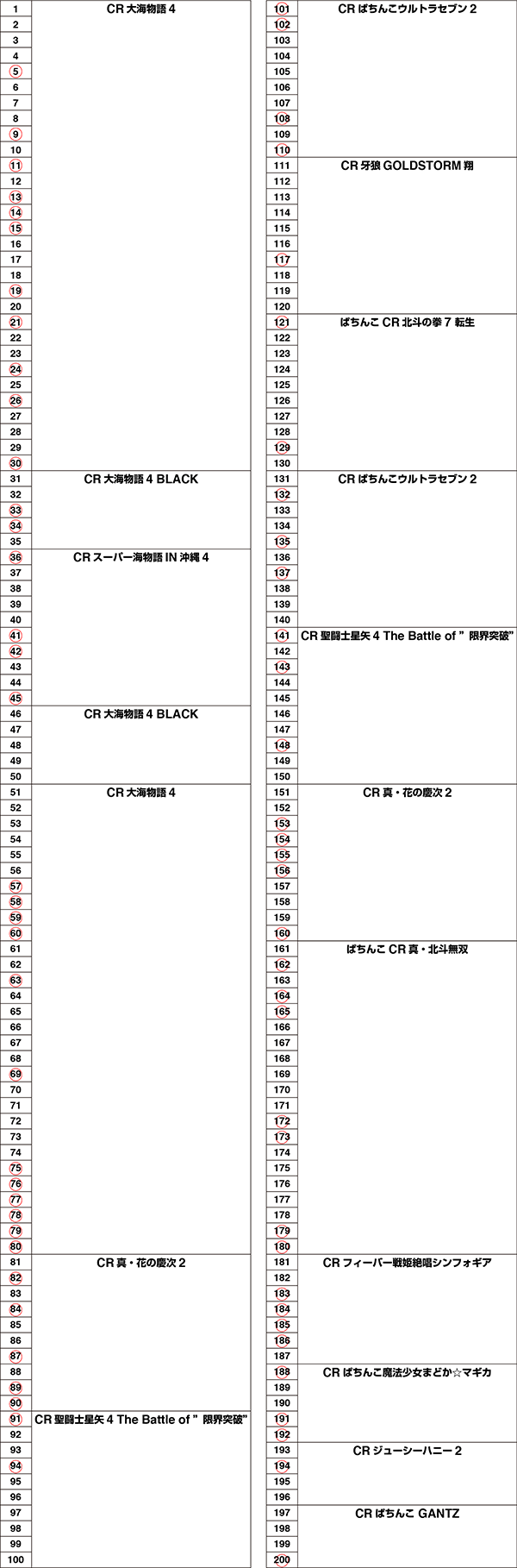 「アイムジャグラーEX AnniversaryEdition~プレミアムホワイト~」や「ゴーゴージャグラー」など、さまざまな台に赤丸をつけていった。