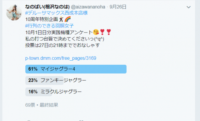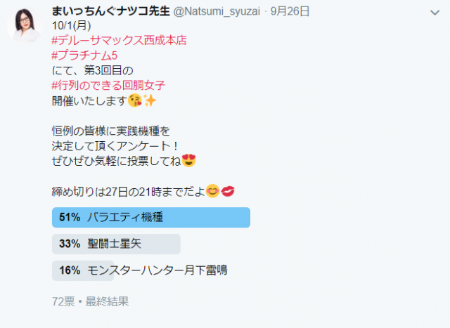 前回の実施時は抽選の結果が悪く、アンケートで決まった機種を打てない女子がいたんですよね……。