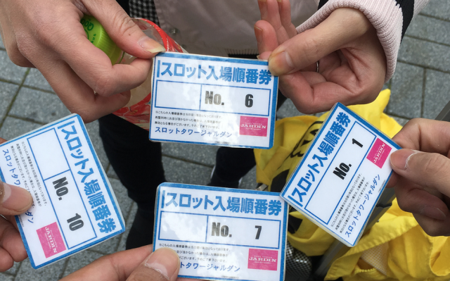 狙い台に思いを馳せ、引き当てた整理券はなんと1番。