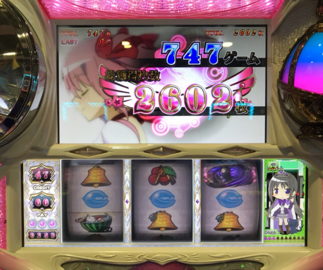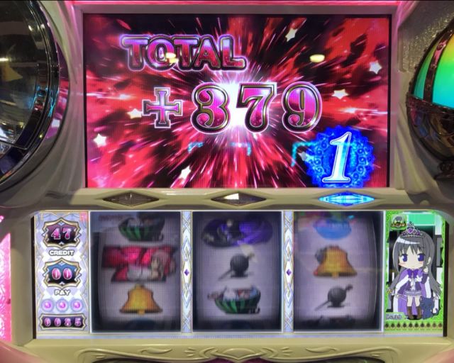 さらには、ワルプルギスの夜の追撃赤で弱チェリーなどとパワープレイをし、出玉を一気に獲得。