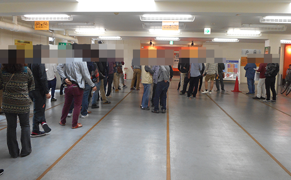 この日は、9時半から入場抽選がおこなわれており、およそ100人のプレイヤーが参加。集合場所が2階にある駐輪場となっているため、初めて訪れる際には少し注意が必要だ。