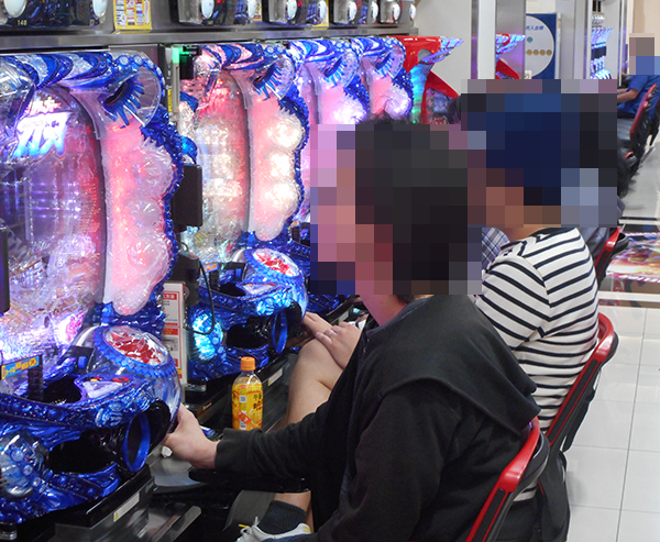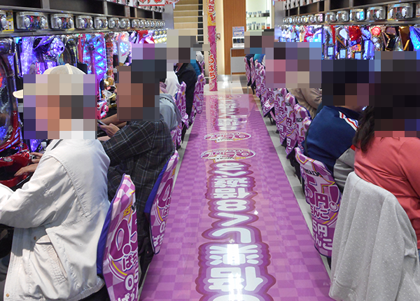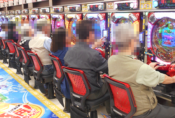 低貸し玉コーナーには常連と思われるプレイヤーも多くみられた。