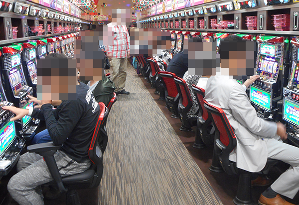 4円パチンコでも、多くのプレイヤーが遊技を楽しんでいた。