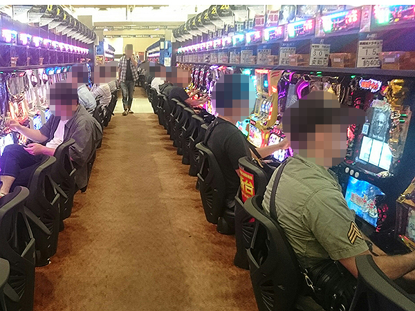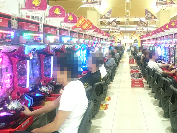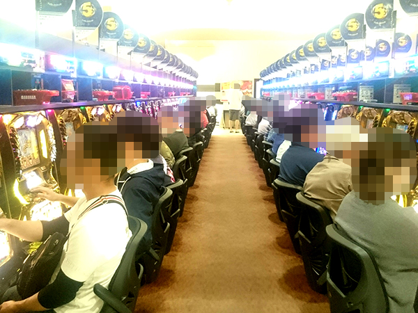 店内には老若男女を問わずプレイヤーが集合。パチンコ・パチスロの各シマから活気が感じられた。