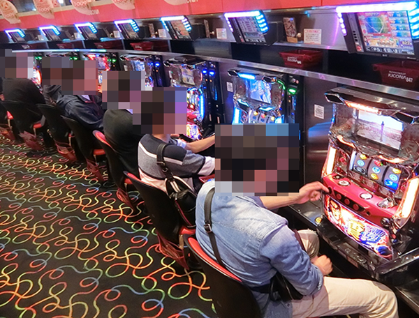 にこやかな表情で遊技をおこなっている姿が多く、シマ全体が明るい雰囲気に包まれていた。