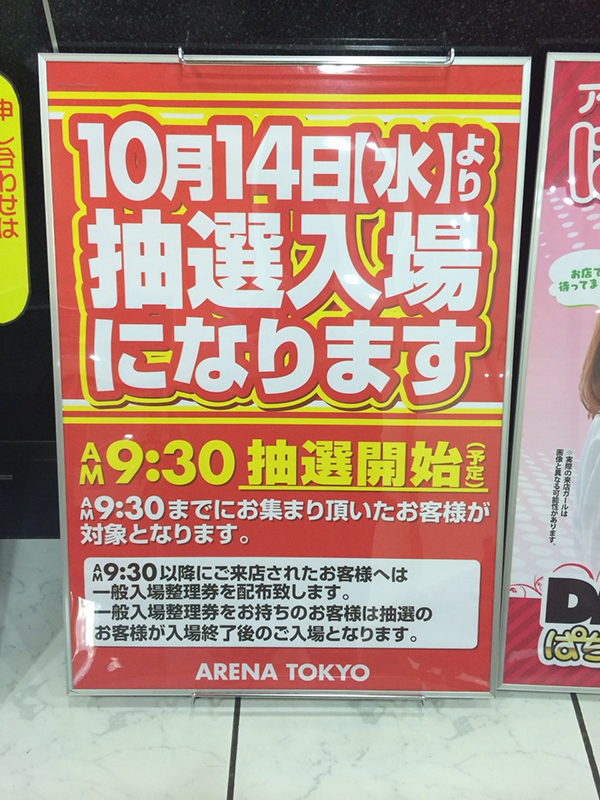 10月14日から抽選入場になりました!