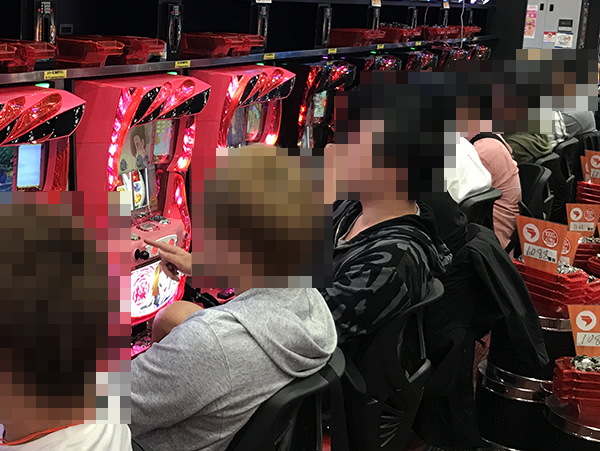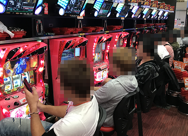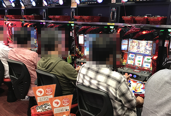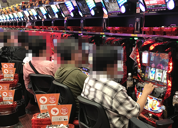 パチスロコーナーにおいて、プレイヤーたちが楽しそうに遊技をおこなっていた。
