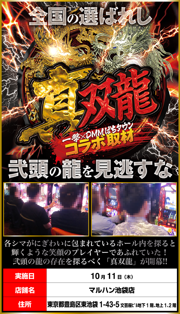 龍の存在を追い求めるべく、「マルハン池袋店」にて「真双龍」を敢行。