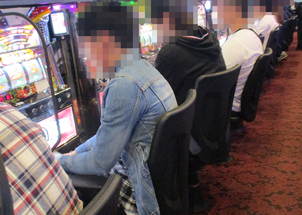 16時を過ぎた頃のパチスロでは、「押忍!番長3」と「沖ドキ!-30」がとくに盛況。プレイヤーたちの活躍により、シマ全体に華やかな光景が広がっていた。