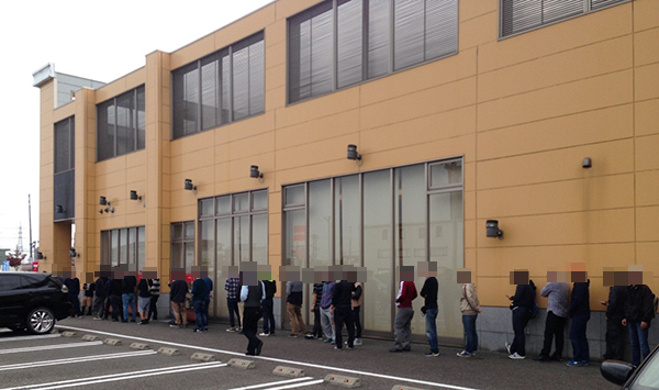 開店前には入場整理券が配布されており、50名ほどのプレイヤーが受け取っていた。開店時間まで車の中で待機しているプレイヤーも多く、開店時には一般入場を含めて80名以上の姿があった。