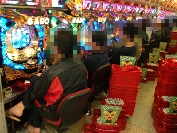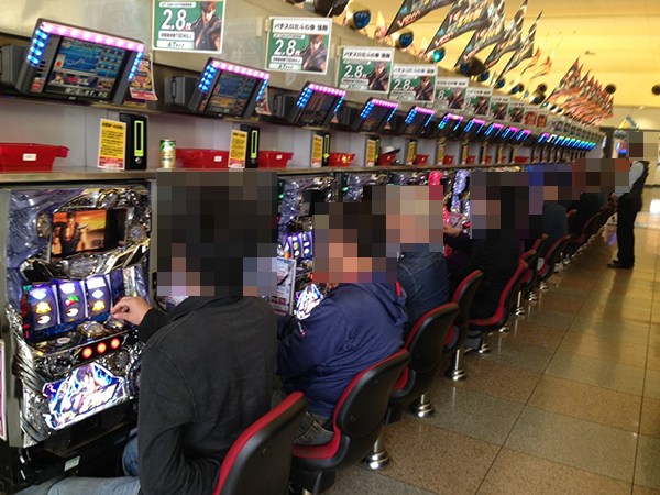 また、4円パチンコの新台「CR牙狼 魔戒ノ花」や「CRぱちんこ仮面ライダー フルスロットル」などもほぼ満席状態となっており、パチンコもパチスロも開店時から大きな活気に包まれていた。