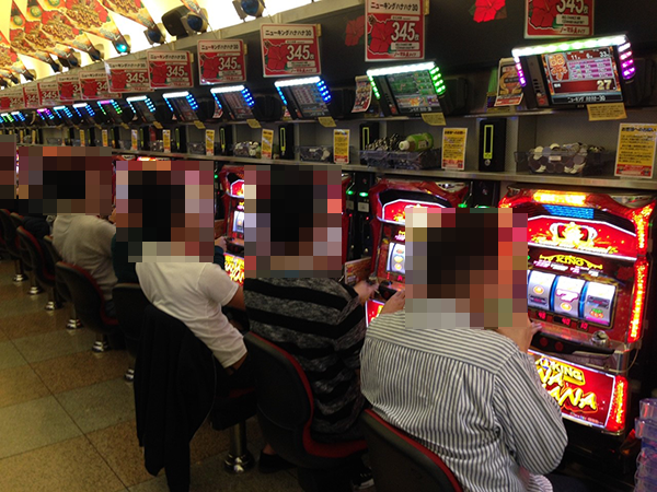 4円パチンコも朝と変わらず、新台の「CRぱちんこ仮面ライダー フルスロットル」や「CR牙狼 魔戒ノ花」、「CRFマクロスフロンティア2」がほぼ満席。