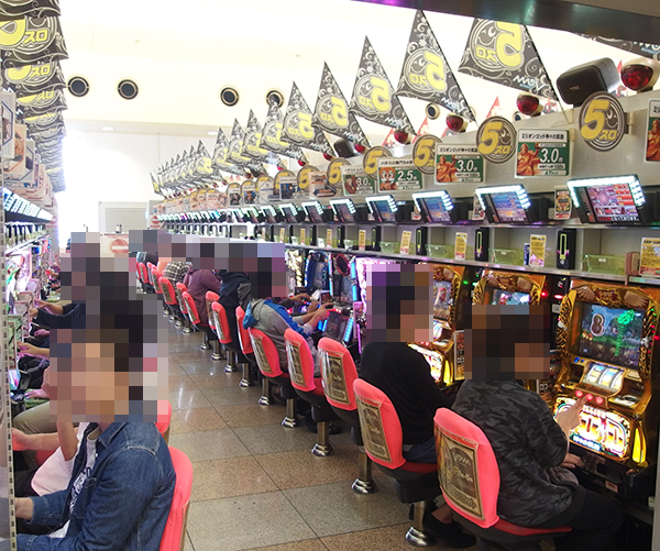 5円パチスロコーナーもほぼ空き台がなく、そのなかでも「ミリオンゴッド-神々の凱旋-」の勢いがとくに目立っていた。