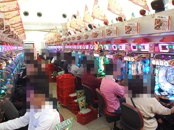 4円パチンコは、朝と同様に「CR牙狼 魔戒ノ花」が人気をキープしており、新台の魅力をうまく引き出せているようなプレイヤーもあちこちで見られた。