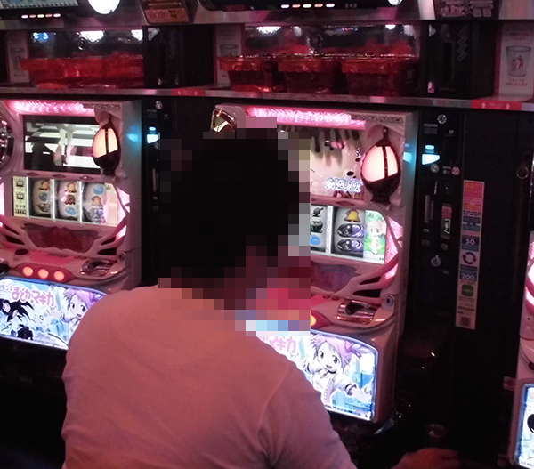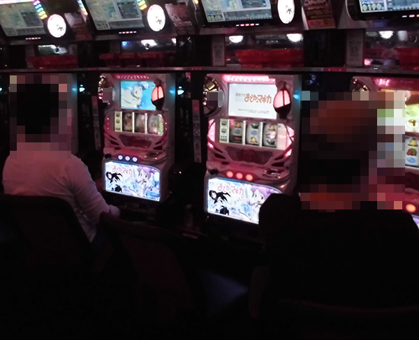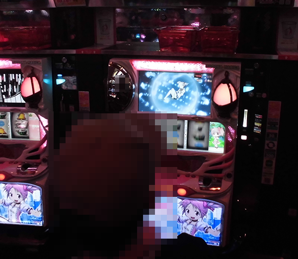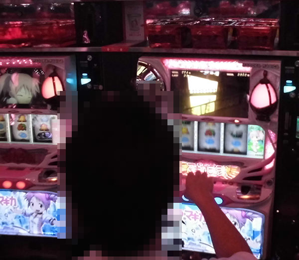 暗めの照明によってシックな雰囲気に包まれているパチスロコーナーをみると、「SLOT魔法少女まどか☆マギカ」で華麗なパフォーマンスを披露するプレイヤーを確認。