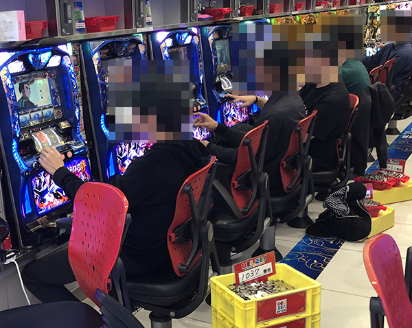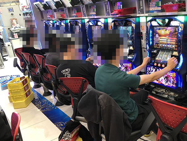 「バジリスク~甲賀忍法帖~絆」において、華麗なパフォーマンスを披露するプレイヤーを目撃。機種の性能を十分に引き出せているといった姿も多く、シマ全体が大きく盛り上がっていた。