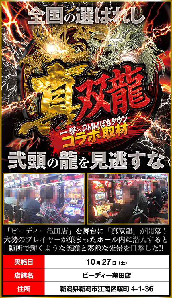 白と赤を基調とした外観の「ビーディー亀田店」で「真双龍」を敢行。