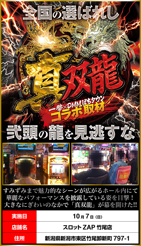 パチスロ専門店の「スロットZAP竹尾店」で「真双龍」を敢行。
