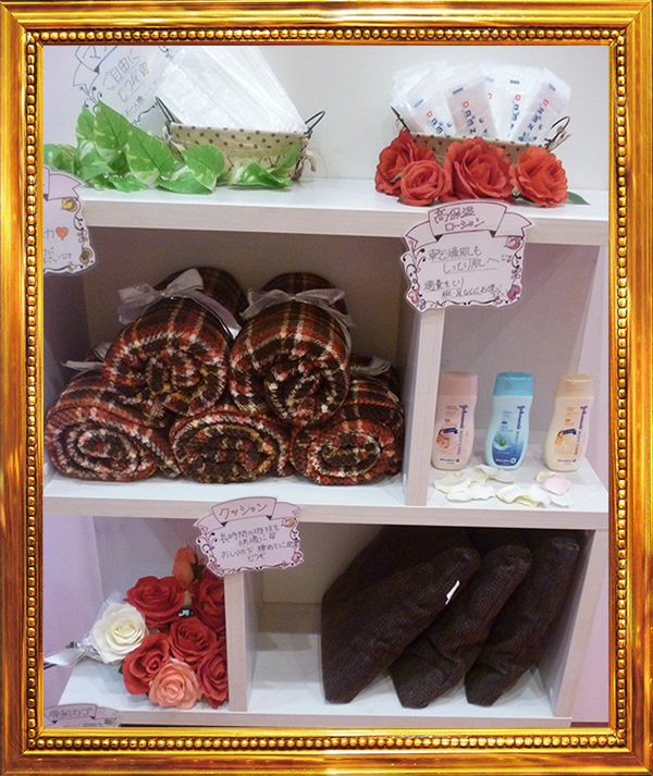 ブランケットやスキンケアローションなどが貸し出されていることも好感を持ったポイント。肌寒さを感じた時や乾燥が気になる場合など、これからの季節に重宝されそうなものが揃っていた。