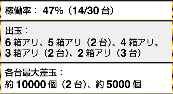 『CRスーパー海物語IN沖縄4』では、9名以上のプレイヤーが2箱を超える出玉を獲得。