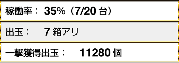 『ぱちんこCR真・北斗無双 第2章』において、一撃で10000個以上の出玉を獲得している光景を目撃した。