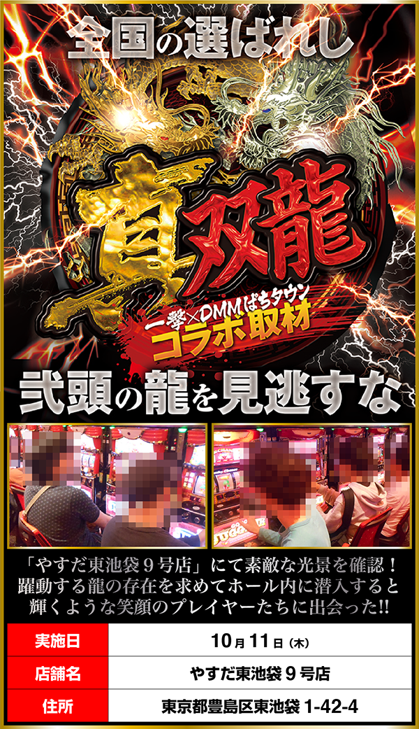 パチスロ専門店の「やすだ東池袋9号店」を舞台に「真双龍」を敢行。